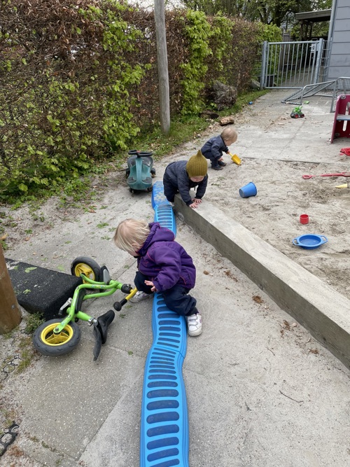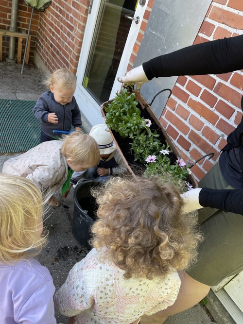 Vi har aktiviteter inde eller ude, både planlagte pædagogiske aktiviteter eller børneinitierede aktiviteter og en lille gruppe børn er på tur hver dag, enten med klapvogn eller ladcykler, så vi kan komme til skoven eller stranden.