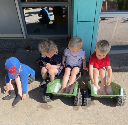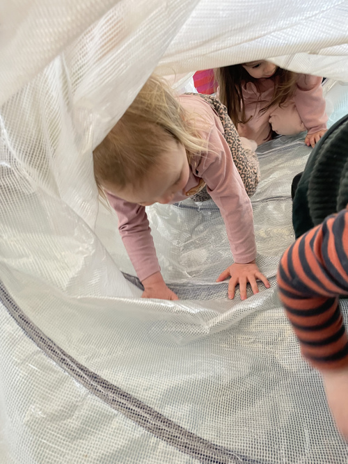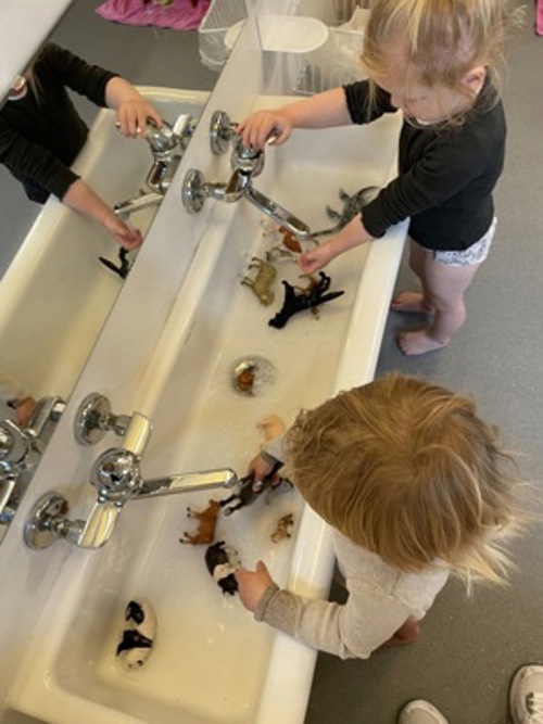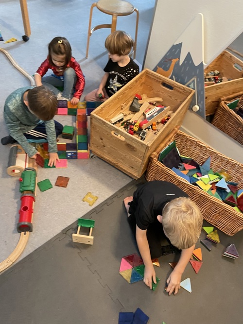 Vi åbner i vuggestuen og børnehaven og tager imod børnene, som inviteres ind i legemiljøer, som vi har gjort klar til dem.