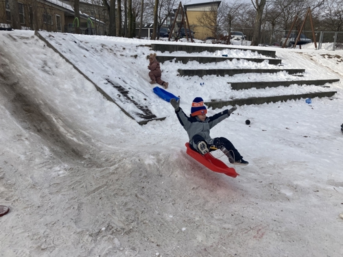 Børnene er ude i al slags vejr, og vores legeplads giver børnene god mulighed for udeliv og motoriske udfordringer.