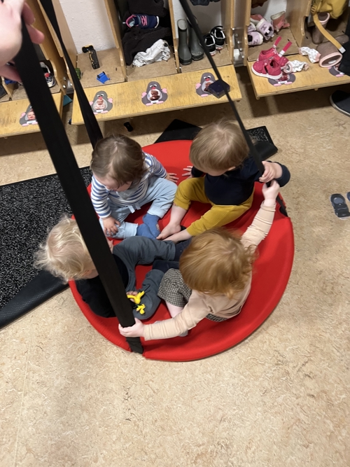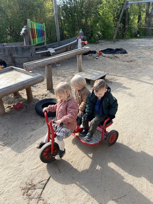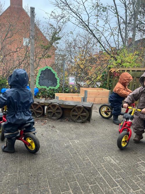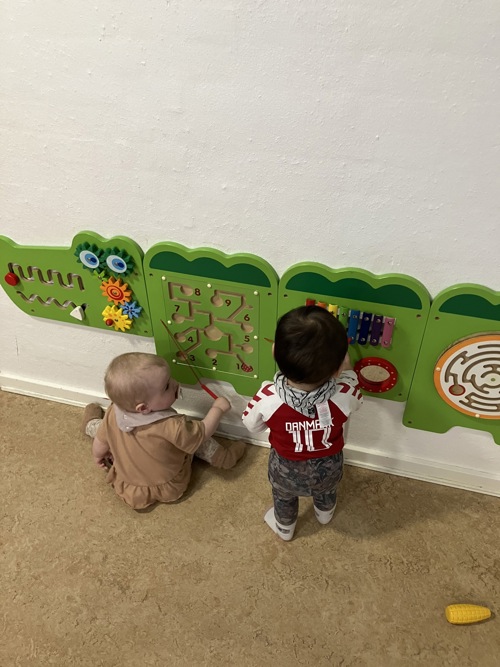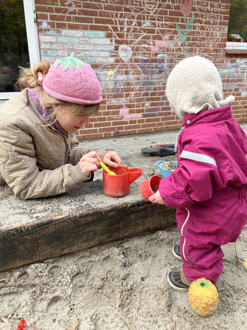 Da vi har mange søskendepar, har mange af børnene glæde af at mødes på tværs af stuerne. Udenfor bruger vuggestuebørnene også ofte børnehavens legeplads.