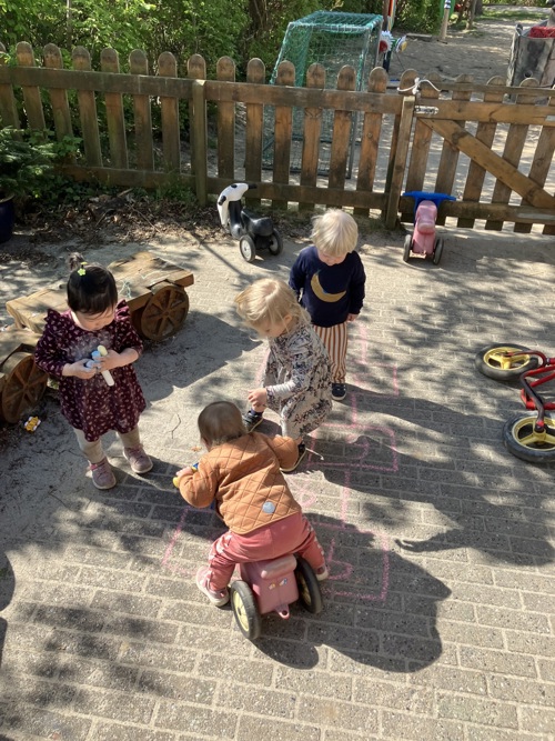 Vi har fokus på at etablere og styrke relationerne mellem børnene, ved både at støtte op om børnenes egne valg af venner og samtidig hjælpe med at få alle børn med i børnefællesskabet.