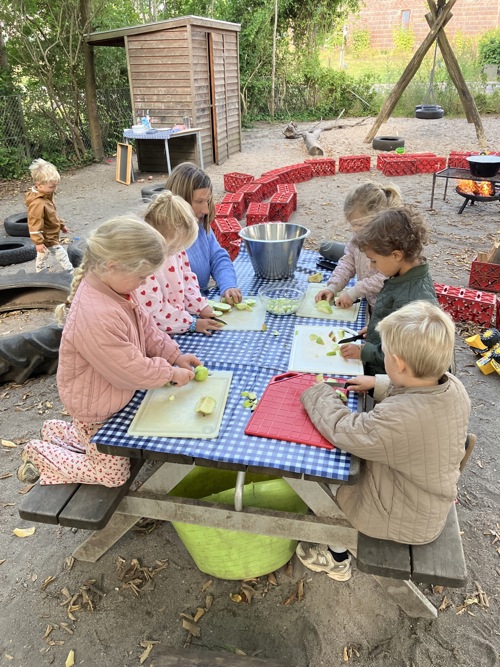Vi har fokus på udeliv, og vi prioriterer, at børnene kommer på legepladsen hver dag i al slags vejr. Vi bruger legepladsen på forskellige måder, fx til bålmad, fokus på planter og dyreliv samt motorisk udfordrende lege. Vi benytter også mulighederne i nærområdet som park, skov og strand.