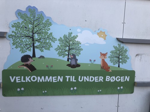Under Bøgen er en integreret institution med to børnehavegrupper og en vuggestuegruppe.