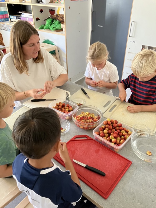 Børnehavebørnene skal hver dag medbringe et stykke frugt til formiddagsmad.