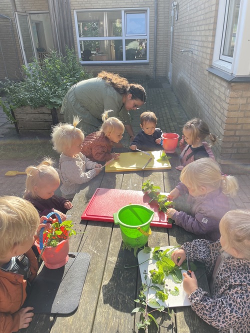 Vi støtter børnenes selvhjulpenhed, så de får oplevelsen af at kunne selv. Når børnene nærmer sig børnehavealderen, har vi mere målrettet fokus på sprog og selvhjulpenhed for at gøre barnet parat til børnehave.