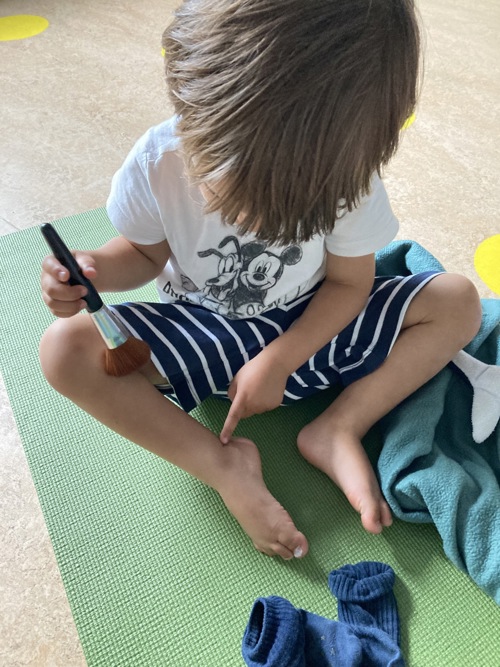 Vi åbner og starter dagen i fællesrummet med morgenhygge og leg.