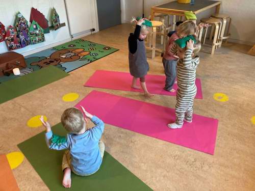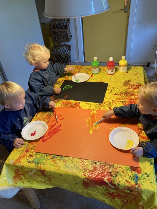 Vi har forskellige aktiviteter, hvor børnene oftest er opdelt i mindre grupper. Nogle dage er hele stuen sammen om at lave fx rytmik, på tur eller lege inde eller ude.